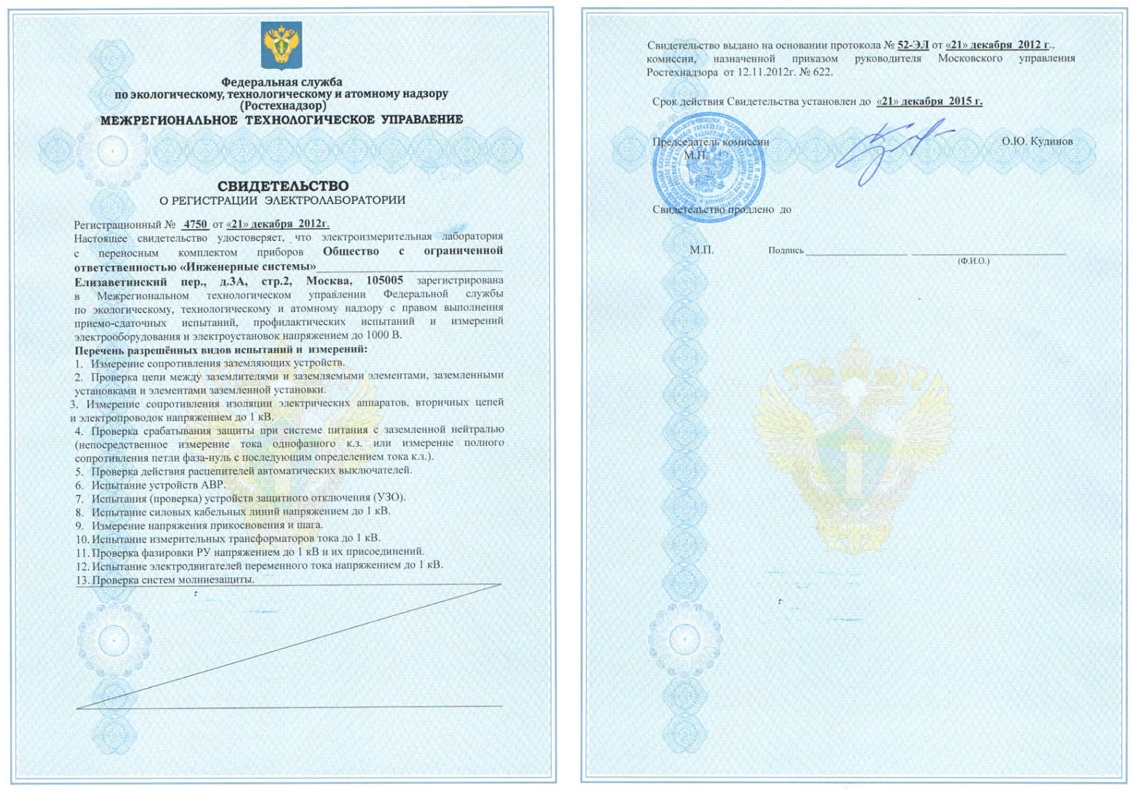 Регистрация электролаборатории (ЭТЛ) в территориальном управлении Ростехнадзора – необходимое условие допуска специализированной электроизмерительной лаборатории к осуществлению деятельности по проведению замеров параметров и профилактических испытаний электроустановок с правом оформления протоколов, а также различных энергоаудитов и т.д.