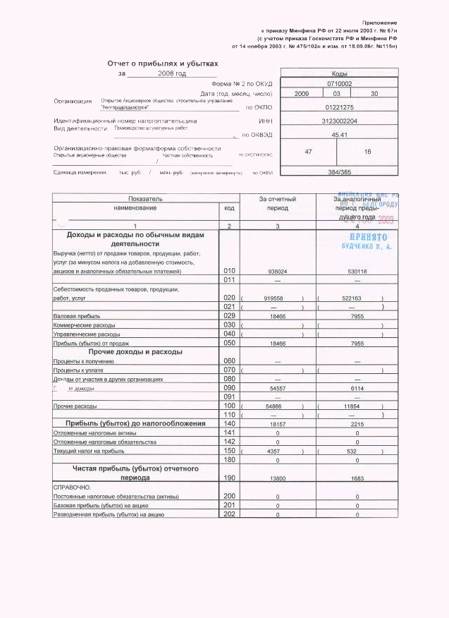 0710002. Отчет о финансовых результатах. Характеризует данные о прибыли и убытках, которые связаны с деятельностью предприятия за определенное время.