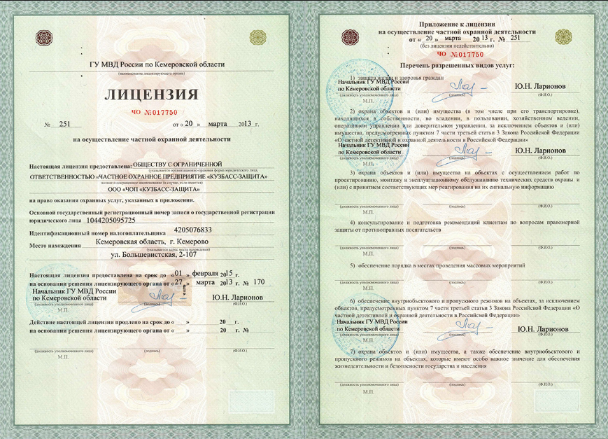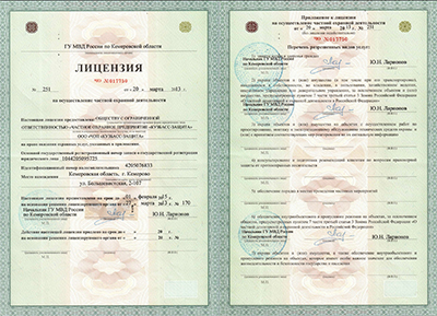 • Лицензирующий орган:  Управление организации лицензионно-разрешительной работы и контроля за частной детективной и охранной деятельностью ГУВД